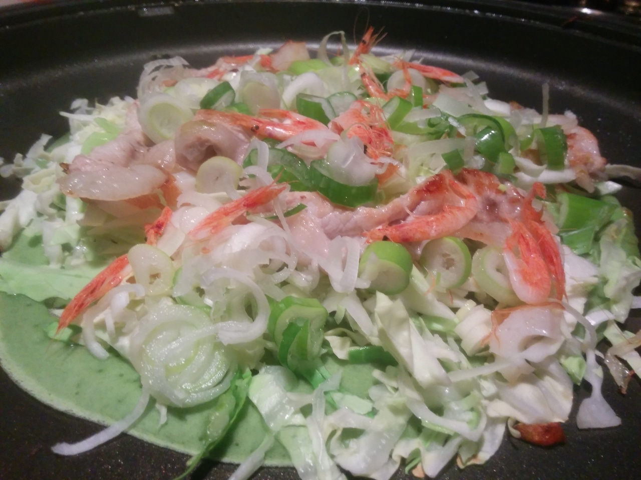 ※パンケーキ作りに万能なクレソン粉。栄養価満点で、写真のようにきれいな緑色が出てきます。お好み焼き、パスタやうどんに練りこんでもOKです。